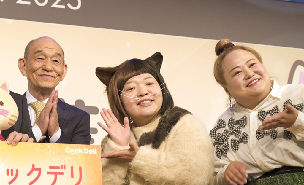 続いてオカリナさんは「こんなに立派な式典に、おかずクラブ2人そろって出席させていただけて本当にうれしいです」と喜びをあらわに。そしてゆいPさんも「実は私の夢は❝いい老人ホームに入ること❞なんです!」と語り、会場は笑顔に包まれました。介護の現場で働く皆さまへの親近感あふれるコメントに、会場は大いに盛り上がりを見せました。