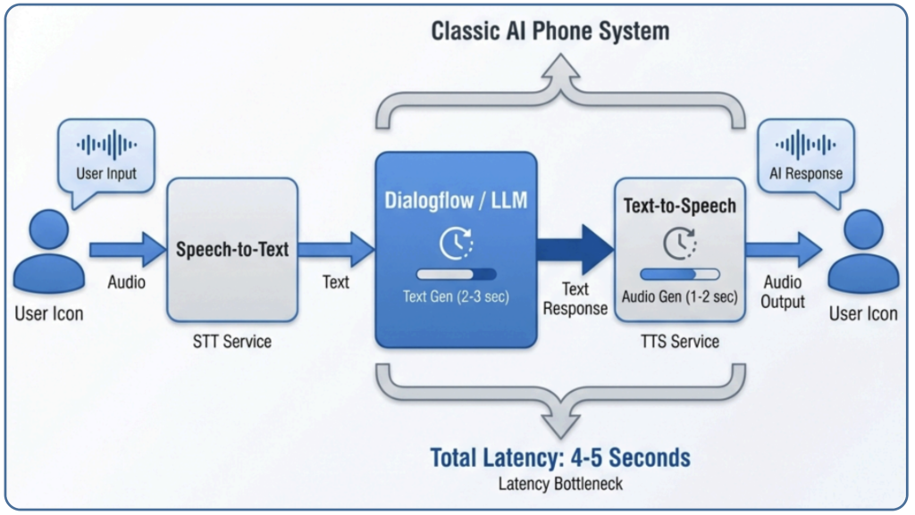 第1世代では、Dialogflowという確実な技術をベースにしながら、遅延という問題に対してキャッシュ等の工夫で立ち向かいました。 しかし、「チャットボットと音声合成の継ぎ接ぎ」である以上、超えられない壁があったのも事実です。